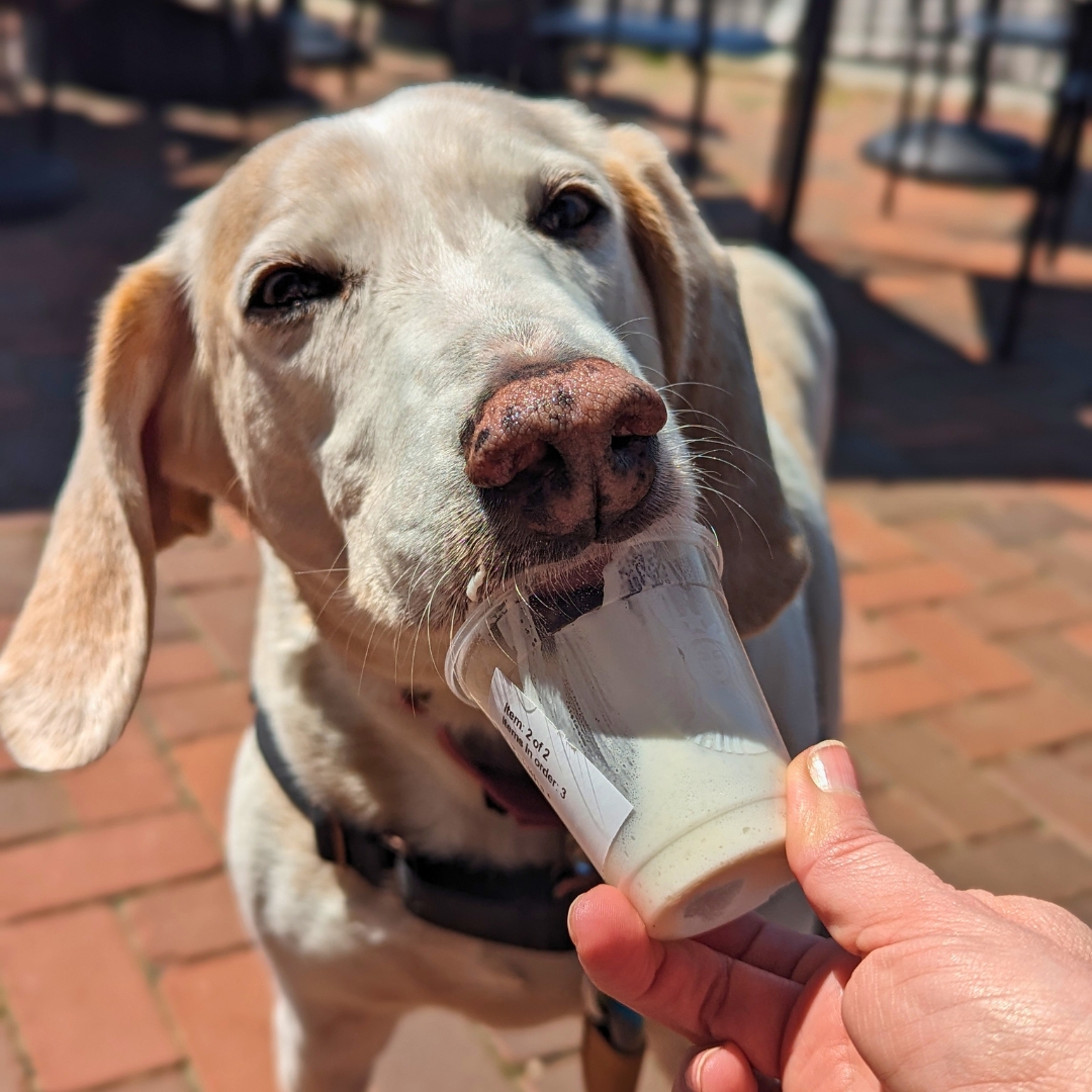 Goldie enjoying a pup cup