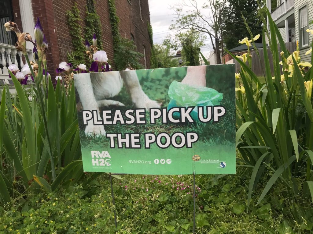 Doing your part is easy: bend at the knees, lean over, use a shovel if that’s your style, scoop the poop, and help it find its way to a trash can. Always carry a couple pet waste bags (or repurposed plastic grocery bags) for those surprise two-potty-breaks-per-walk events. You can stick them in your pocket, tie them around your leash, or carry them in a fetching little dispenser. Picking up after your pooch—every time, whether you’re at home, on a walk, or at the dog park—is a simple action you can take to protect your health, your pup’s health and the James River. Be the best kind of #1 human by picking up your dog’s #2.