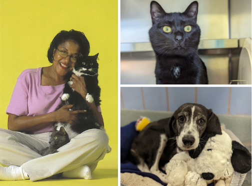 Left: Geraldine Thornton holds two cats in this photo from our archives. Top right: Her namesake Geraldine found a loving home this February. Bottom right: Ms. Gee is a dog we transferred into our care from Henrico County Police Animal Shelter on January 25. She's currently in a foster home while she recovers from surgery.