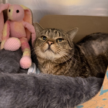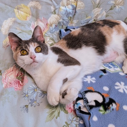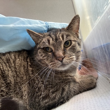 Mama Hen: Mama Hen came into our care in March 2025 and quickly stole the hearts of our staff and supporters. During her time with us, she was treated for dermatitis, MRSP and allergies. Because her ongoing care requires a little extra commitment, it took some time to find the right fit for her needs.