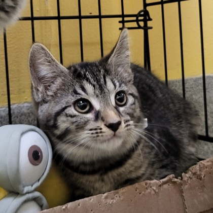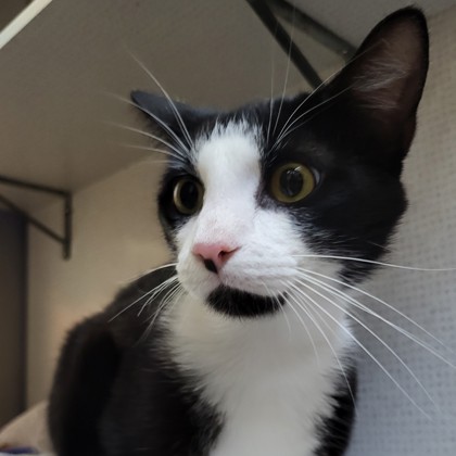 Skillet: Skillet first came into our care in July 2024 and a year later, finally found a place of his own. He was nervous at first, but truly blossomed after our staff earned his trust. We can't wait to see Skillet's full personality shine through in his new home. Congratulations to Skillet and his new guardian!